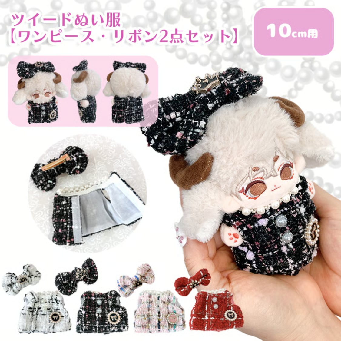 ツイードぬい服【ワンピース・リボン2点セット】10~15cmTGMC-1141
