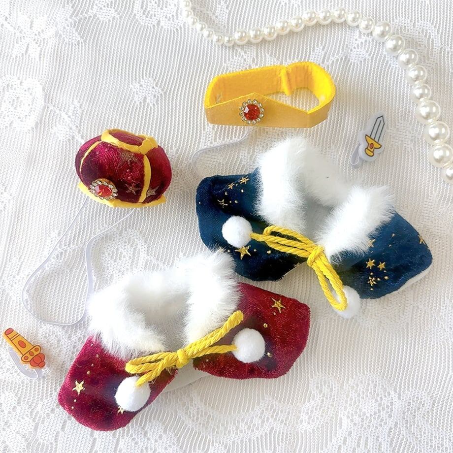 マントは紐を結ぶ仕様、王冠と剣はゴム仕様です。