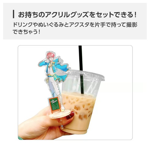 ドリンクや推しぬいを持っててもアクスタやアクキーを片手で撮影ができます!