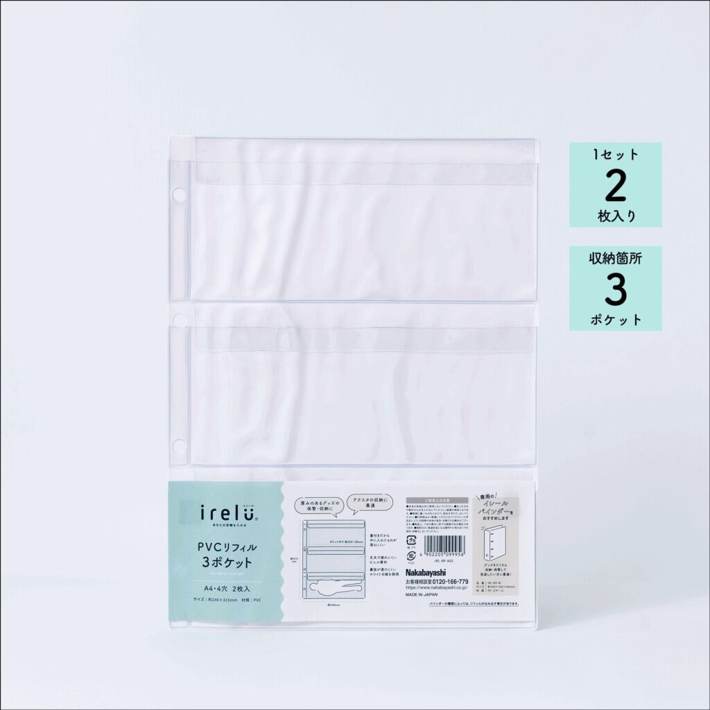 ポケットサイズの異なるイレールPVCリフィルシリーズと組み合わせれば、様々なサイズのアクスタを一冊のバインダーにまとめて収納できます。