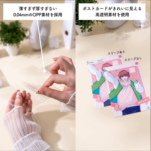 税込高透明素材でポストカードの色彩や細部の見た目そのままに保護できるスリーブ。