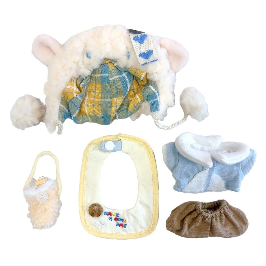 もこもこの羊型キャップをかぶった姿は、見ているだけで心が癒やされます。よだれかけ風のスタイや、衿付きのシャツ、そして小さなバッグが、ぬいぐるみにたまらない愛らしさをプラス。SNSでのぬい撮りや、お出かけのお供に連れて行けば、みんなの視線を独り占めすること間違いなし!