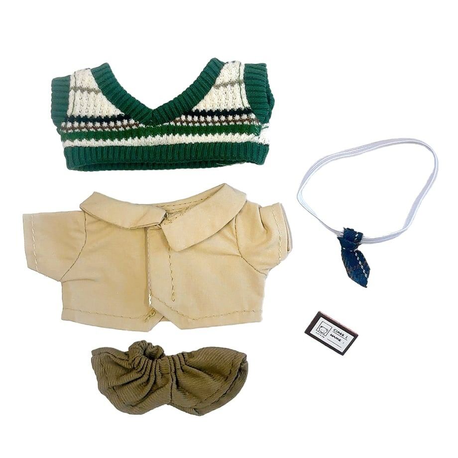 ベストはストレッチ素材、パンツはゴム仕様、シャツはマジックテープ仕様で様々なサイズに対応可能。名札は安全ピンが付いており、好きな位置に付けることができます。あなたの推しぬいを知的で可愛いレトロスタイルに変身させ、ぬい活をさらに充実させましょう!