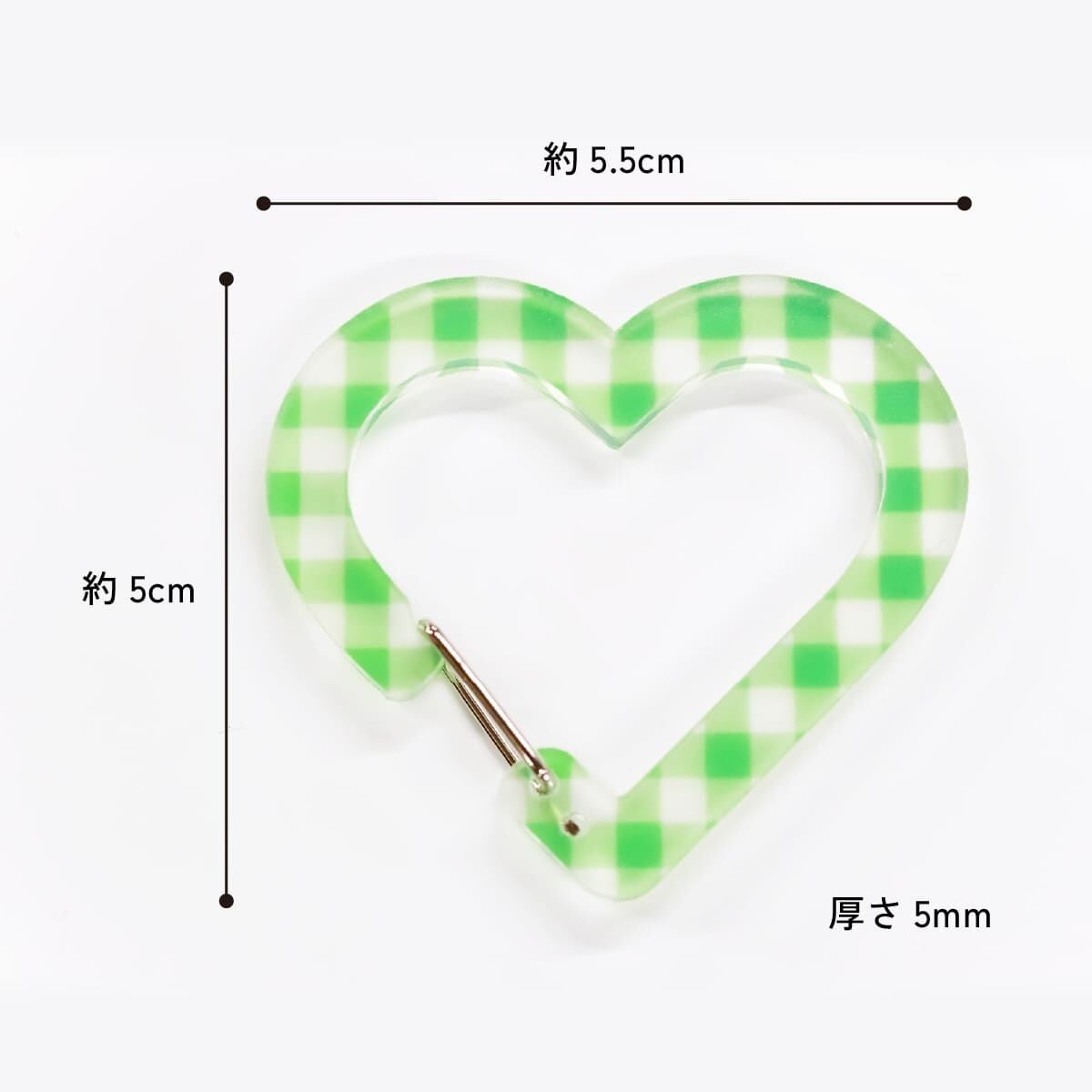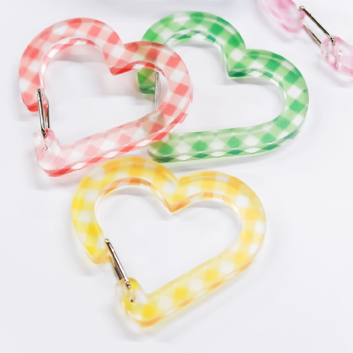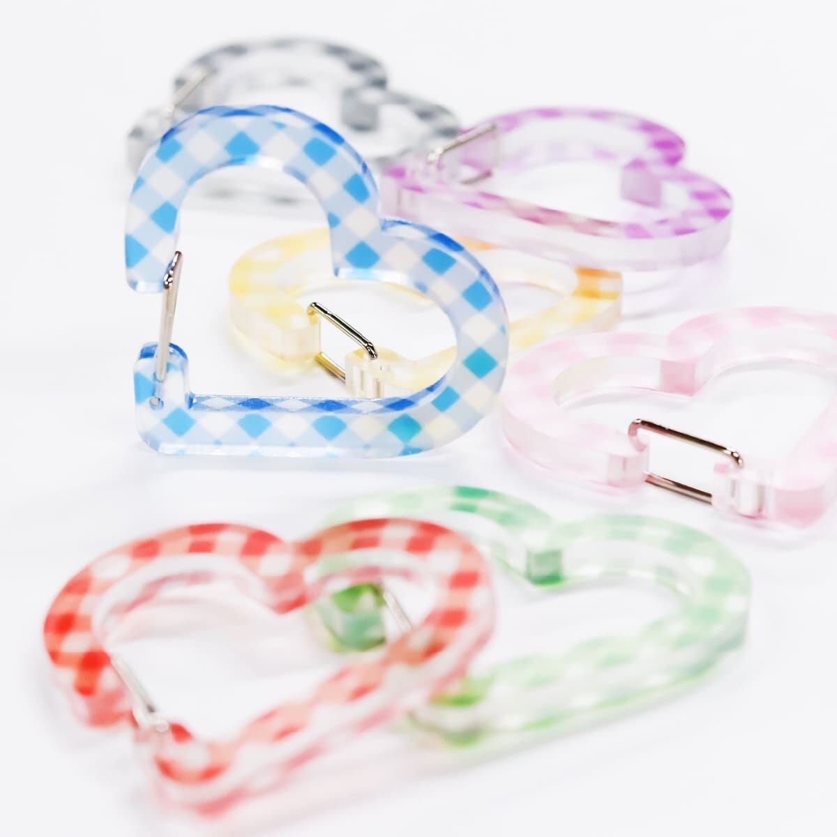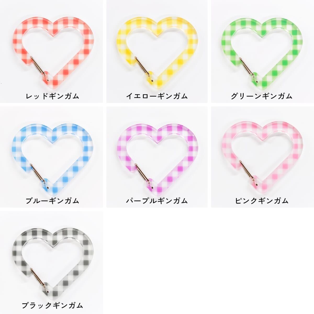 税込ギンガム柄がかわいいハートのアクリル製カラビナキーホルダー。
