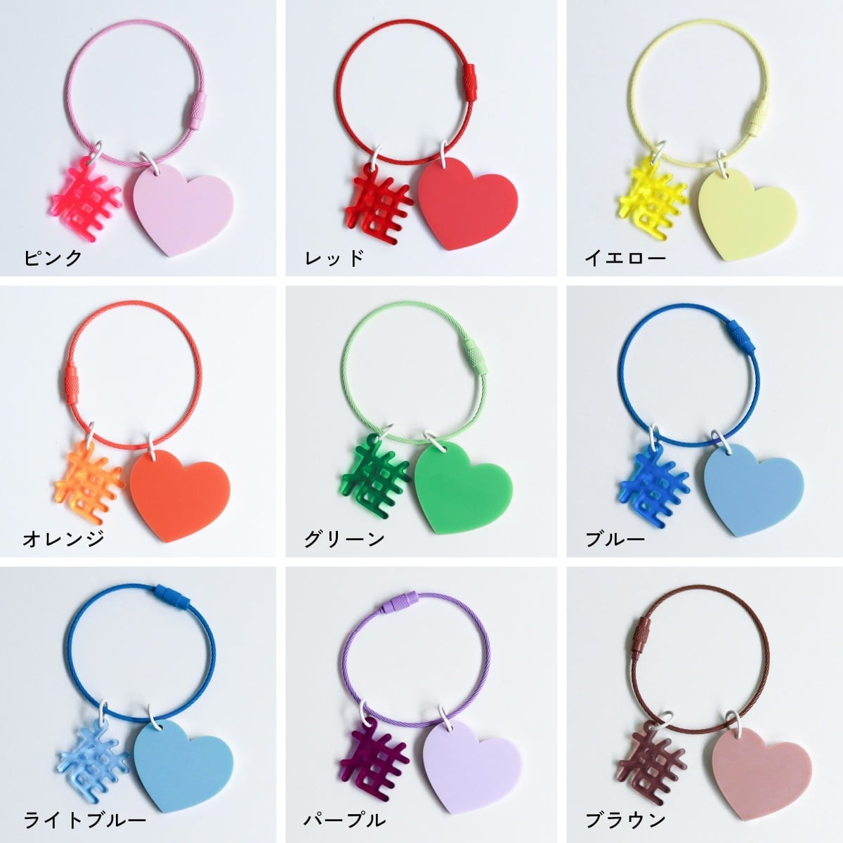 まるでキャンディみたいな文字チャームとくすみカラーのハートがたまらないかわいさ。
