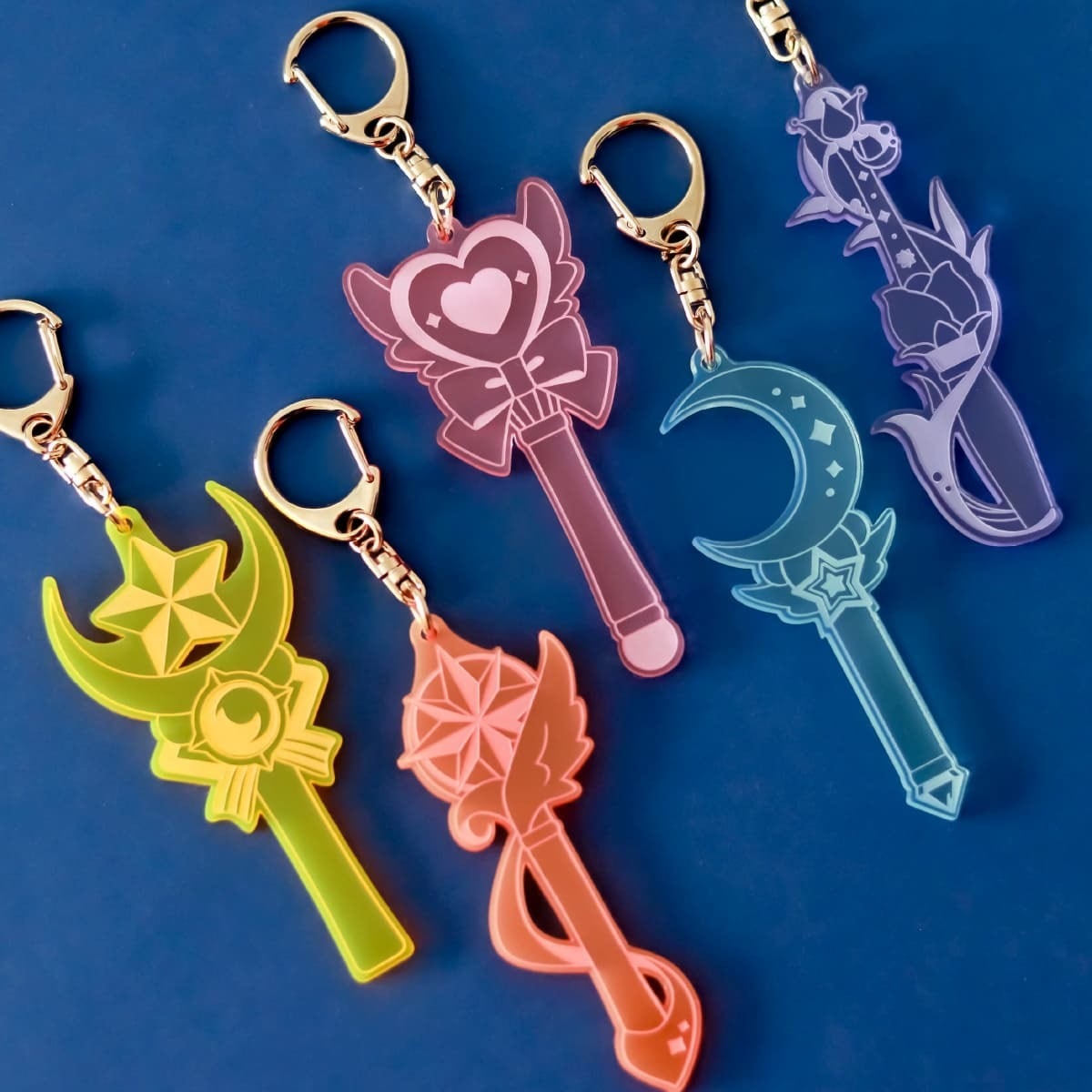 税込女の子なら誰もが憧れた魔法のステッキがキーホルダーに!ネオンのクリアカラーが可愛いアクリル製。カラバリは5色。子供さんにも推し活にも。ハートのカラビナと合わせても◎