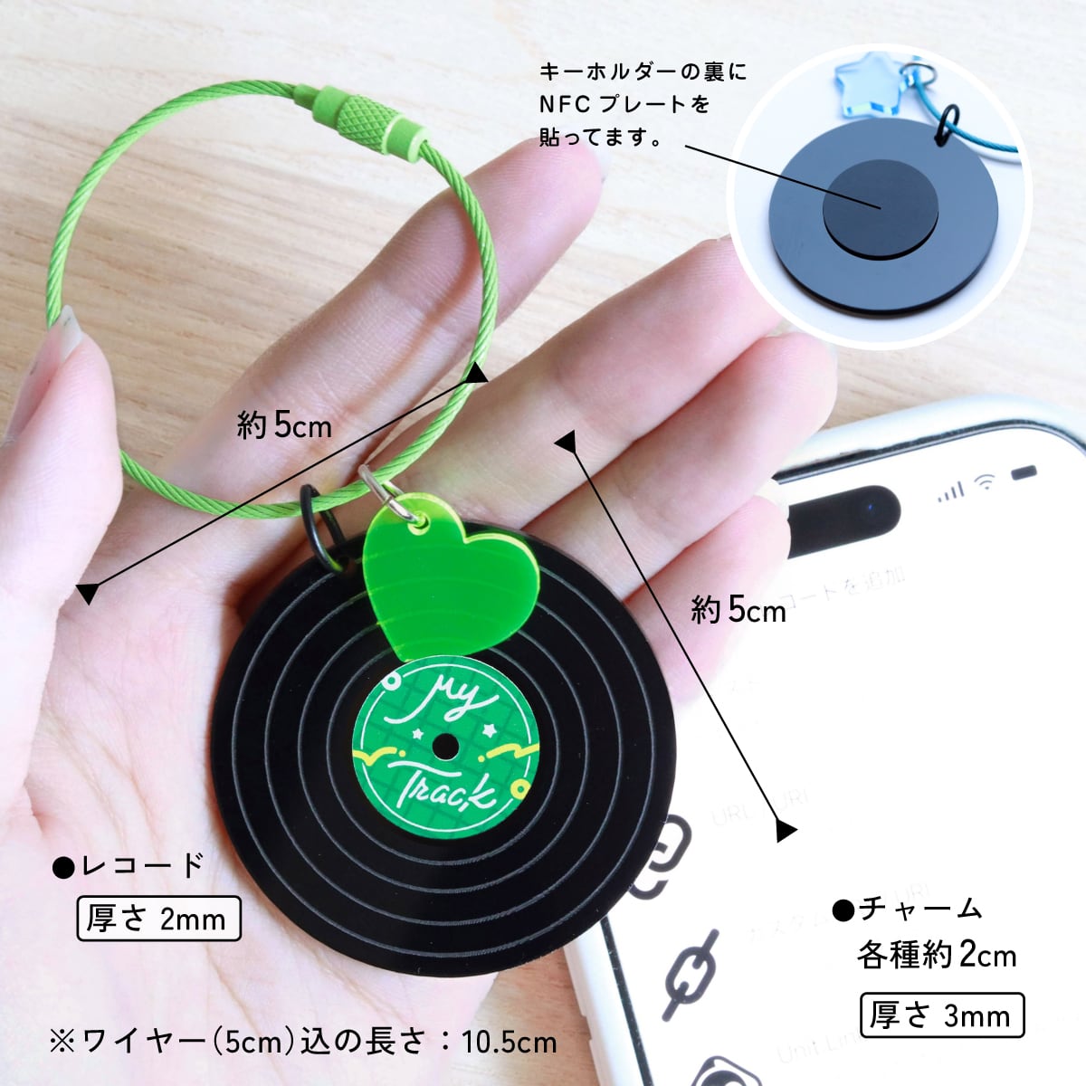 音楽はキーホルダーで持ち歩く時代!NFC付きのレトロなレコードアクリルキーホルダー。