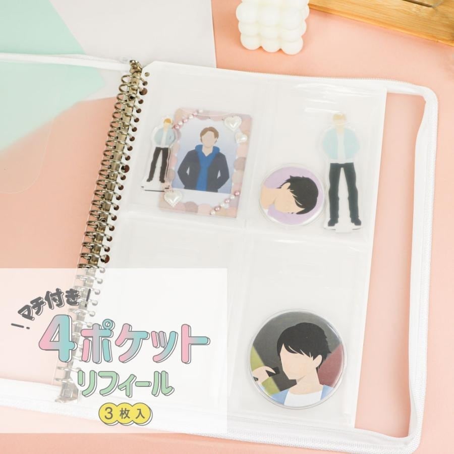 税込アクリルスタンドや缶バッジ等厚みのあるアイテムを収納できるマチ付きポケット付きリフィール