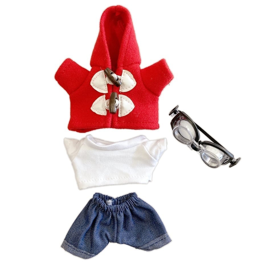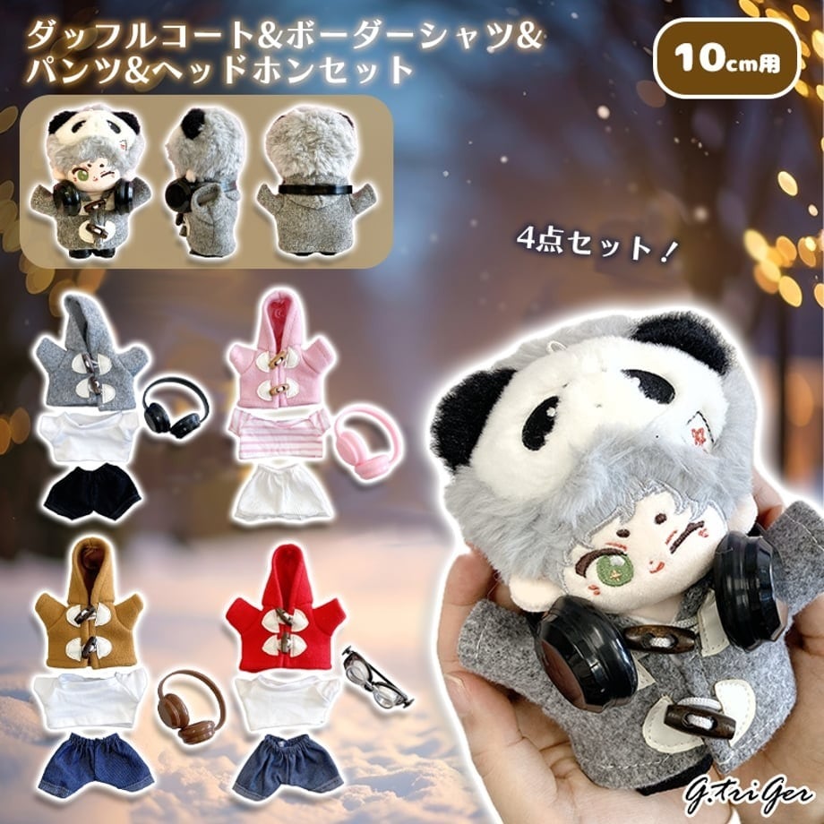 税込冬の定番アウター、ダッフルコートを主役にしたシンプルでおしゃれな10cmぬいぐるみ用4点セットです。
