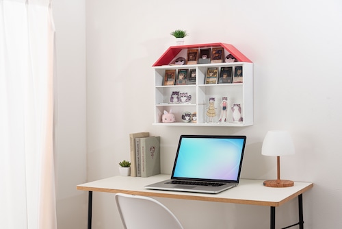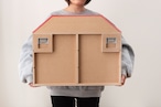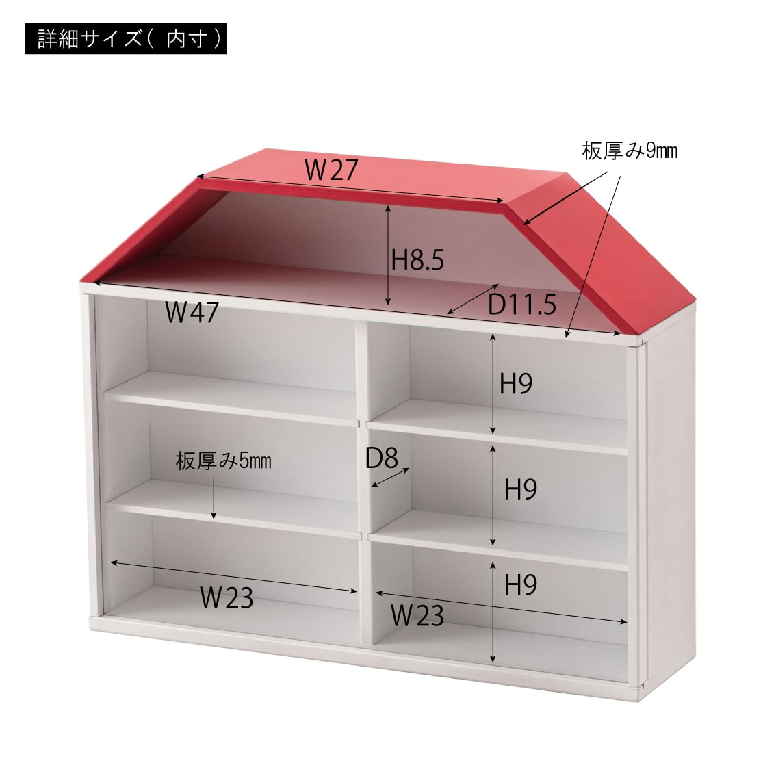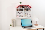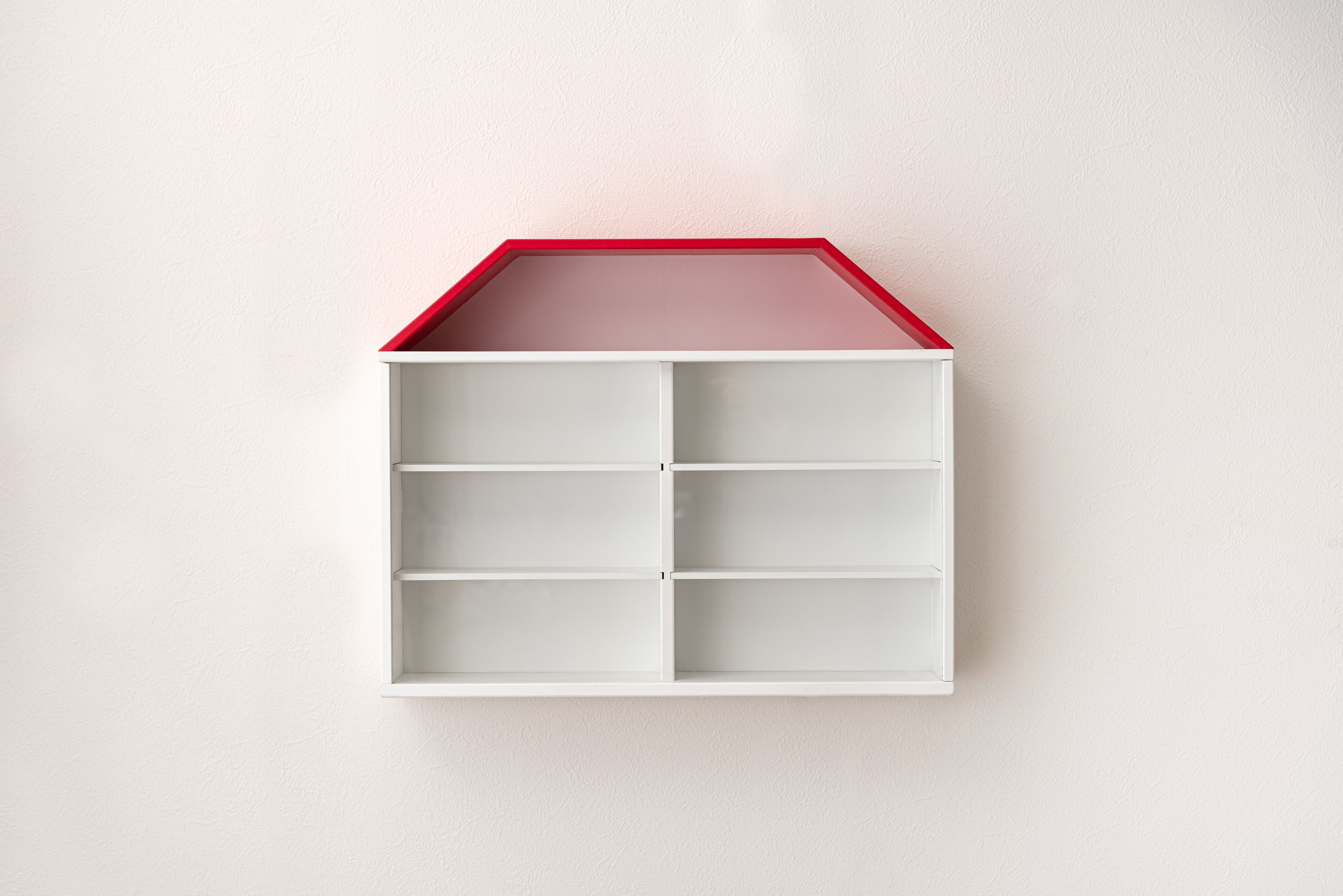 赤い屋根のかわいらしいお家をモチーフにしたラック。スライドカバーはアクリルを採用し、軽量設計。専用の固定ピンで壁面への固定も可能です。