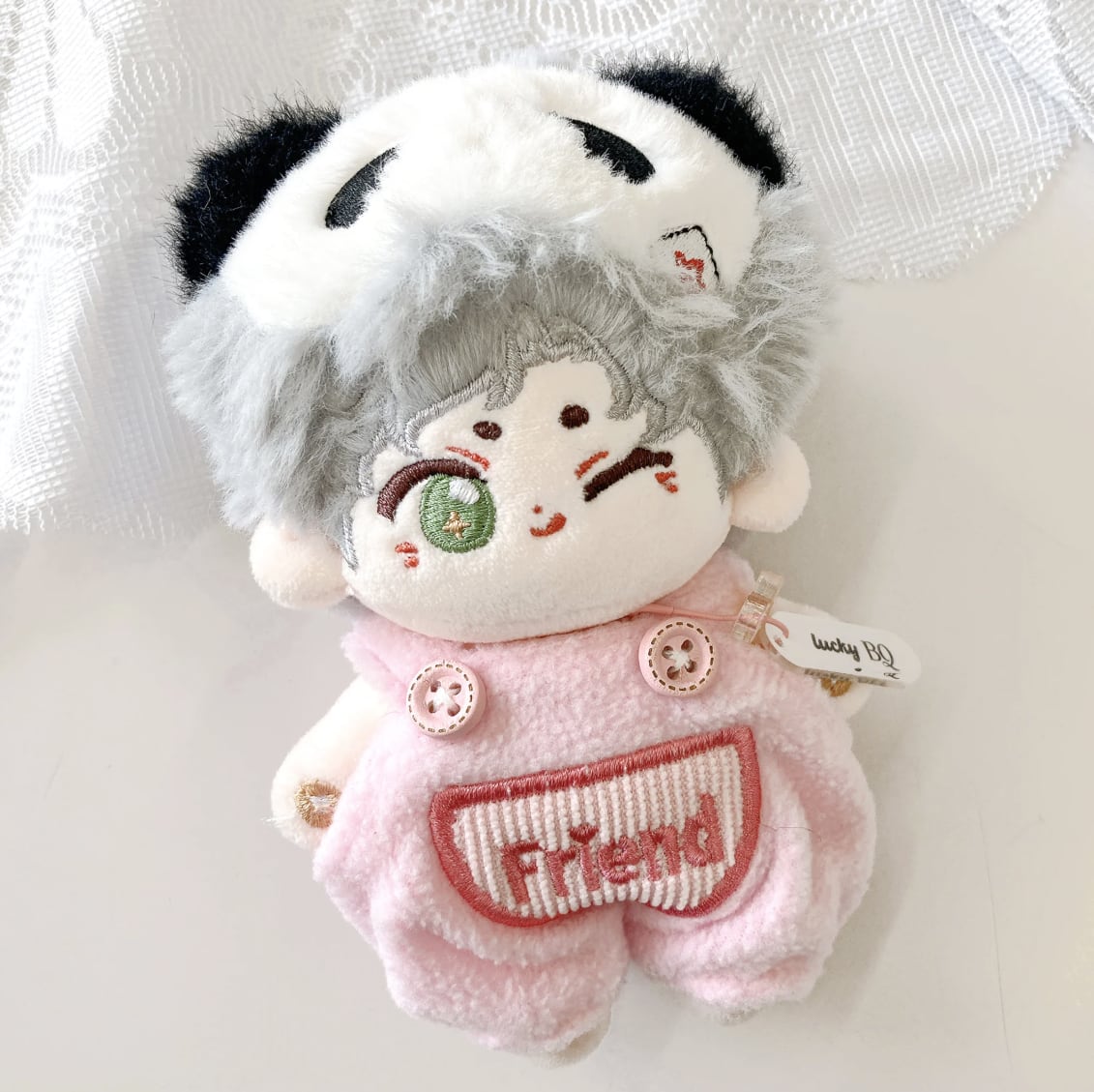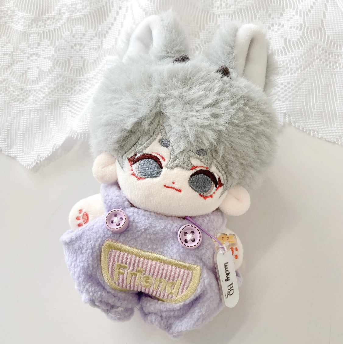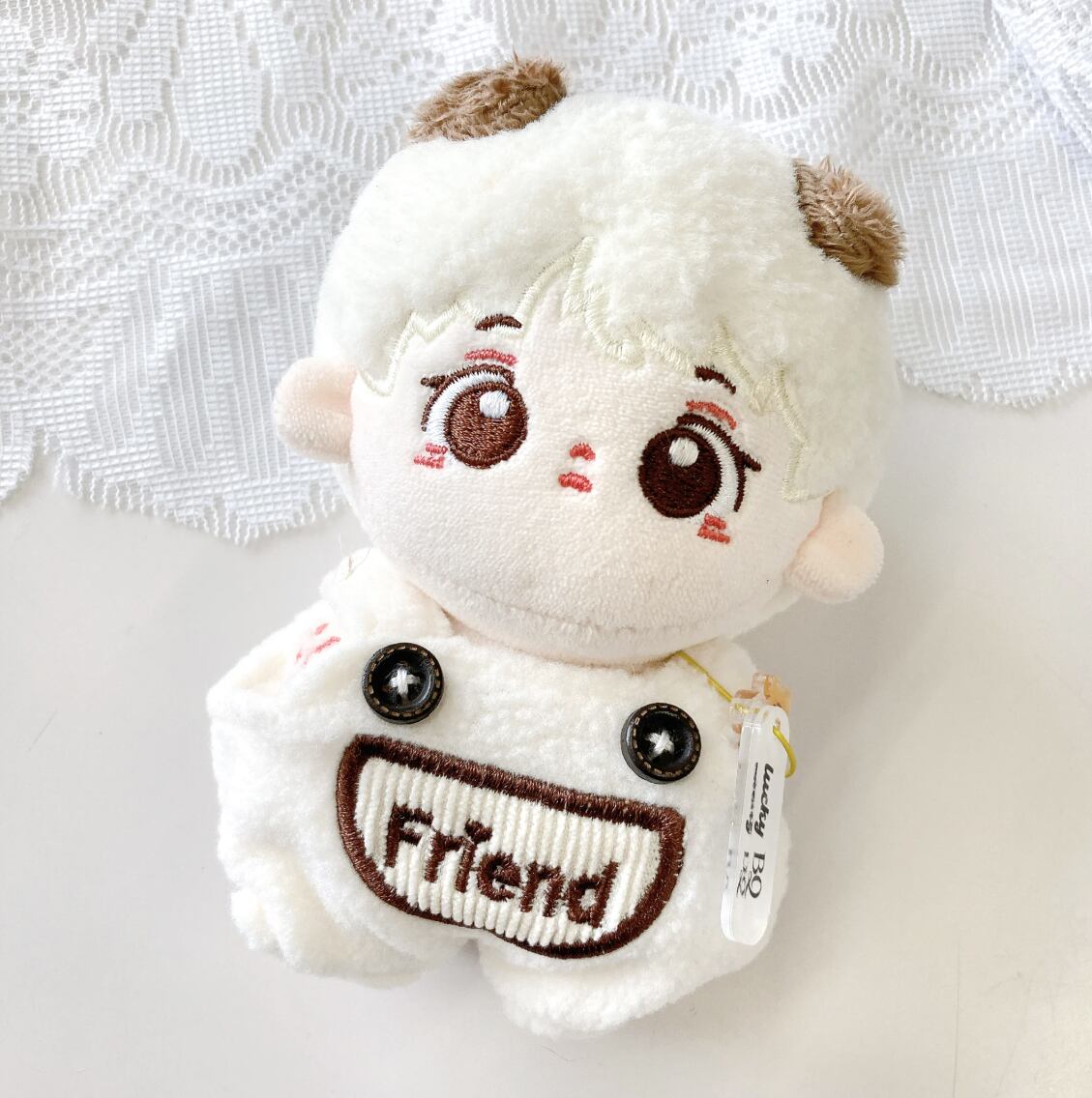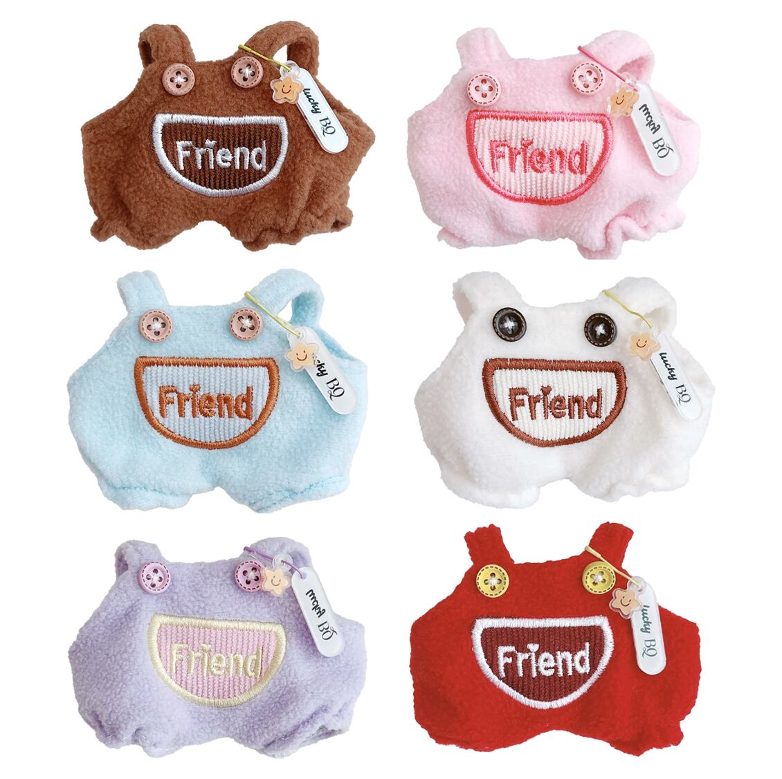 10cmサイズのぬいぐるみ用サロペットです。 フロント部分に「Friend」の刺繍が入った、もこもこ素材が可愛らしい一着。シンプルながら存在感のあるデザインで、お手持ちのトップスや帽子と合わせて自由にコーディネートを楽しめます。冬の「ぬい撮り」や、日常の着せ替えにぴったりのカジュアルなアイテムです。