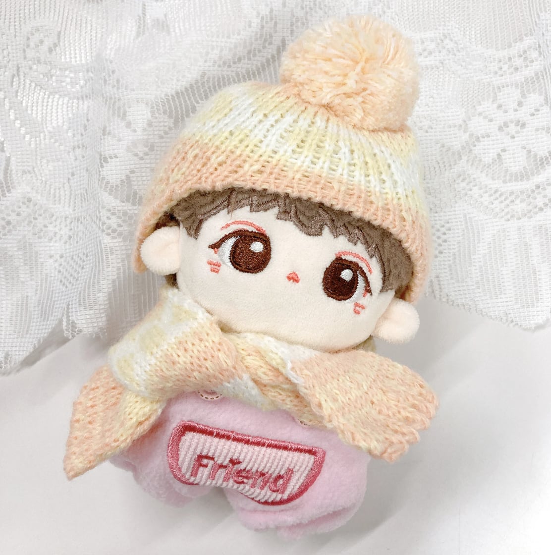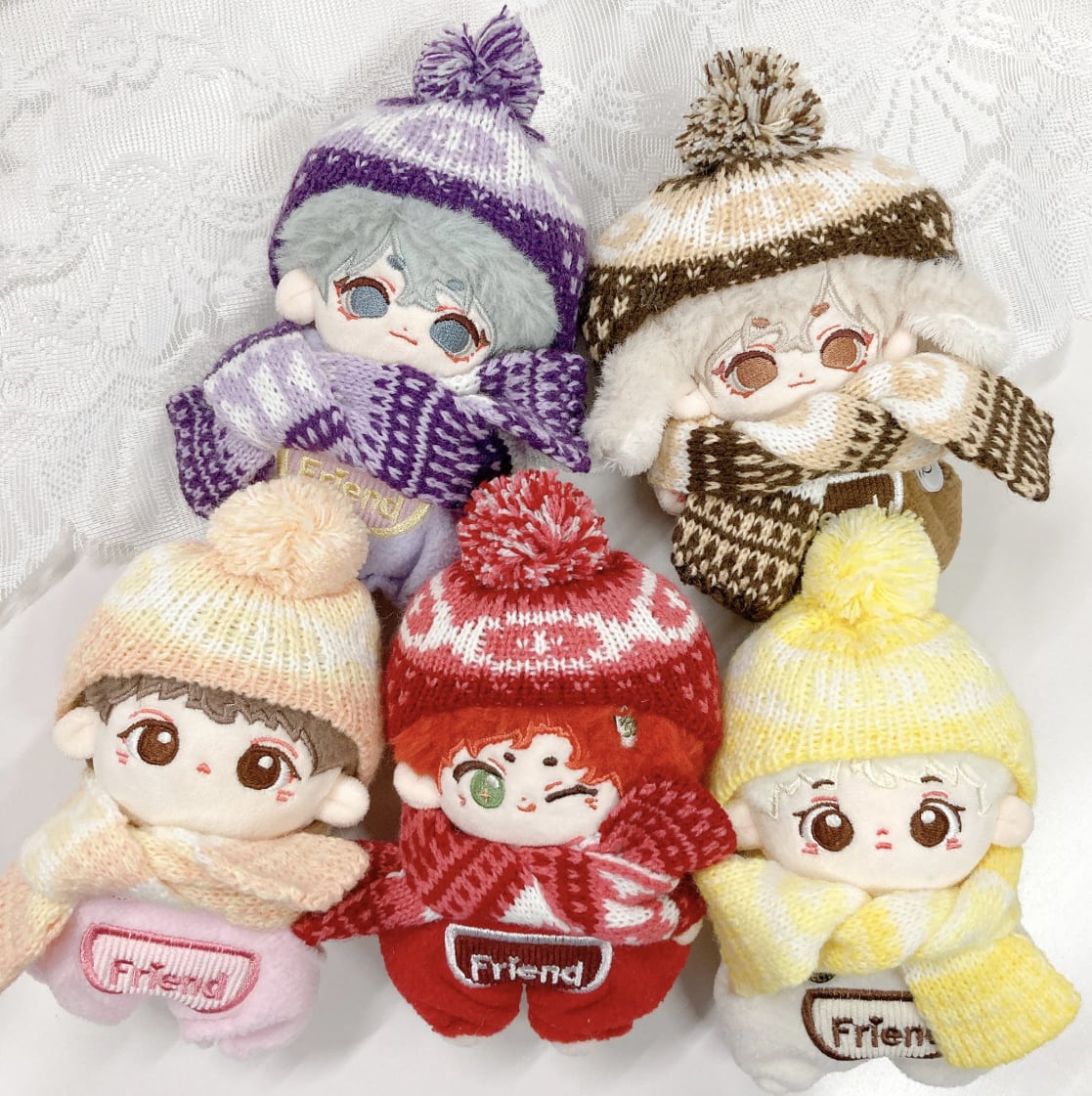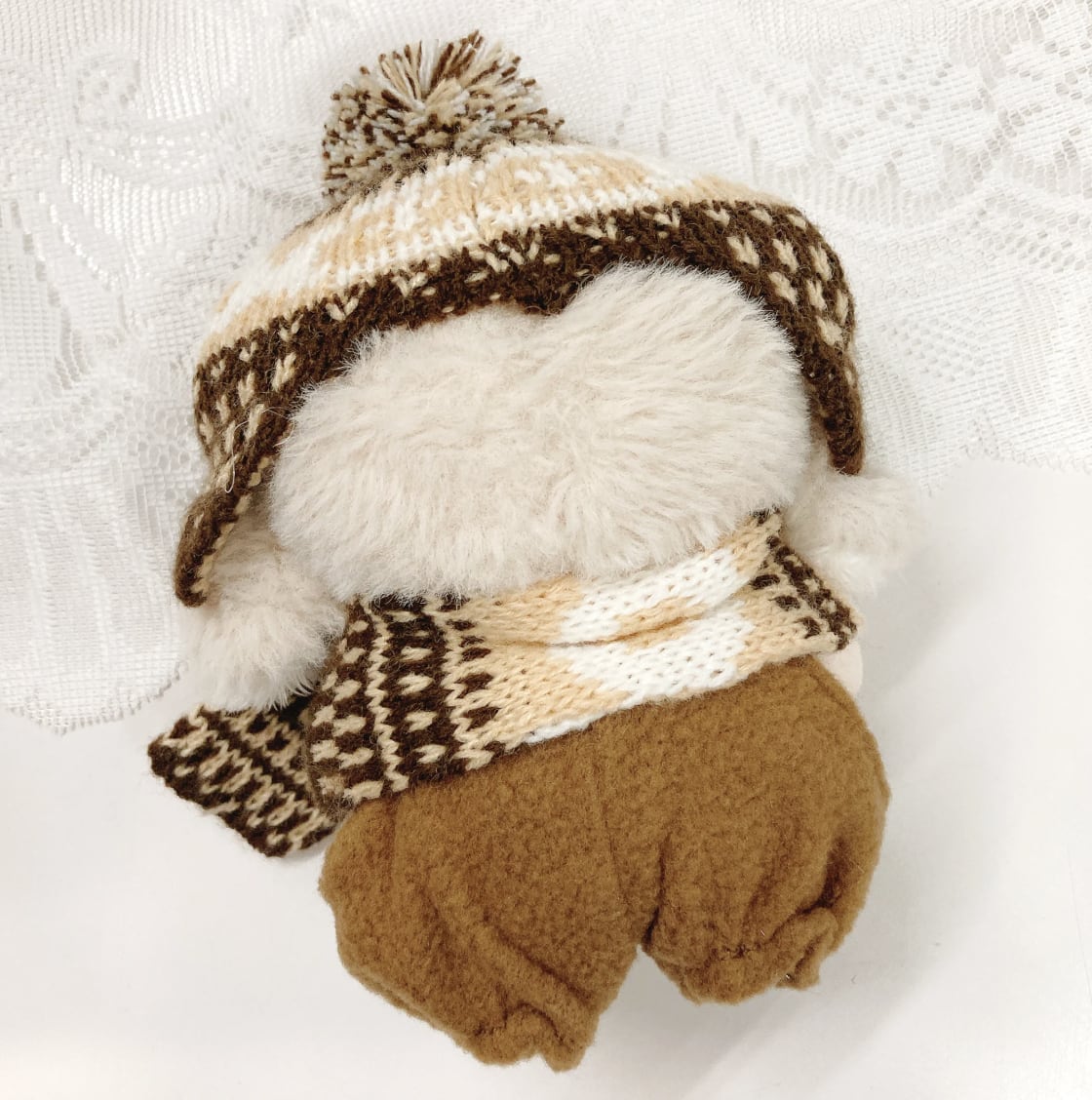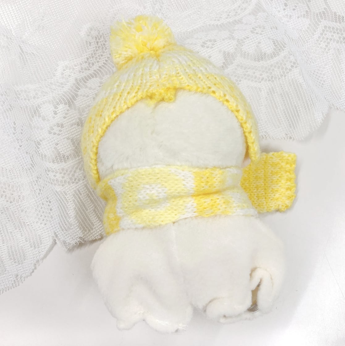 10cmサイズのぬいぐるみ用のノルディック柄ニット帽とマフラーの2点セットです。 温かみのある北欧風の編み模様と、トップの大きなポンポンが目を引くデザイン。耳までしっかり隠れる形のニット帽と、お揃いの柄のマフラーを組み合わせることで、ぬいぐるみを冬のお出かけにぴったりな、ぬくもりあふれるスタイルに変身させます。豊富な5色のカラーバリエーションで、推しカラーに合わせた冬の「ぬい撮り」を存分に楽しめるアイテムです。