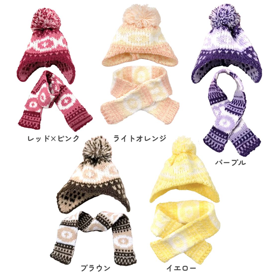 ノルディック柄ニット帽&マフラーセット 10cm用 TGMC-1293