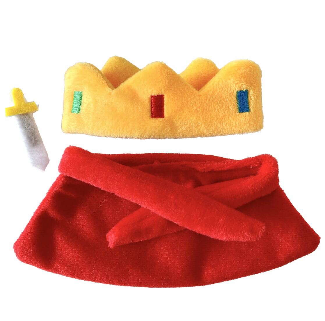 鮮やかなイエローの王冠と情熱的なレッドのマントを身にまとえば、お気に入りのぬいぐるみが気品あふれる「小さな王様」に大変身。