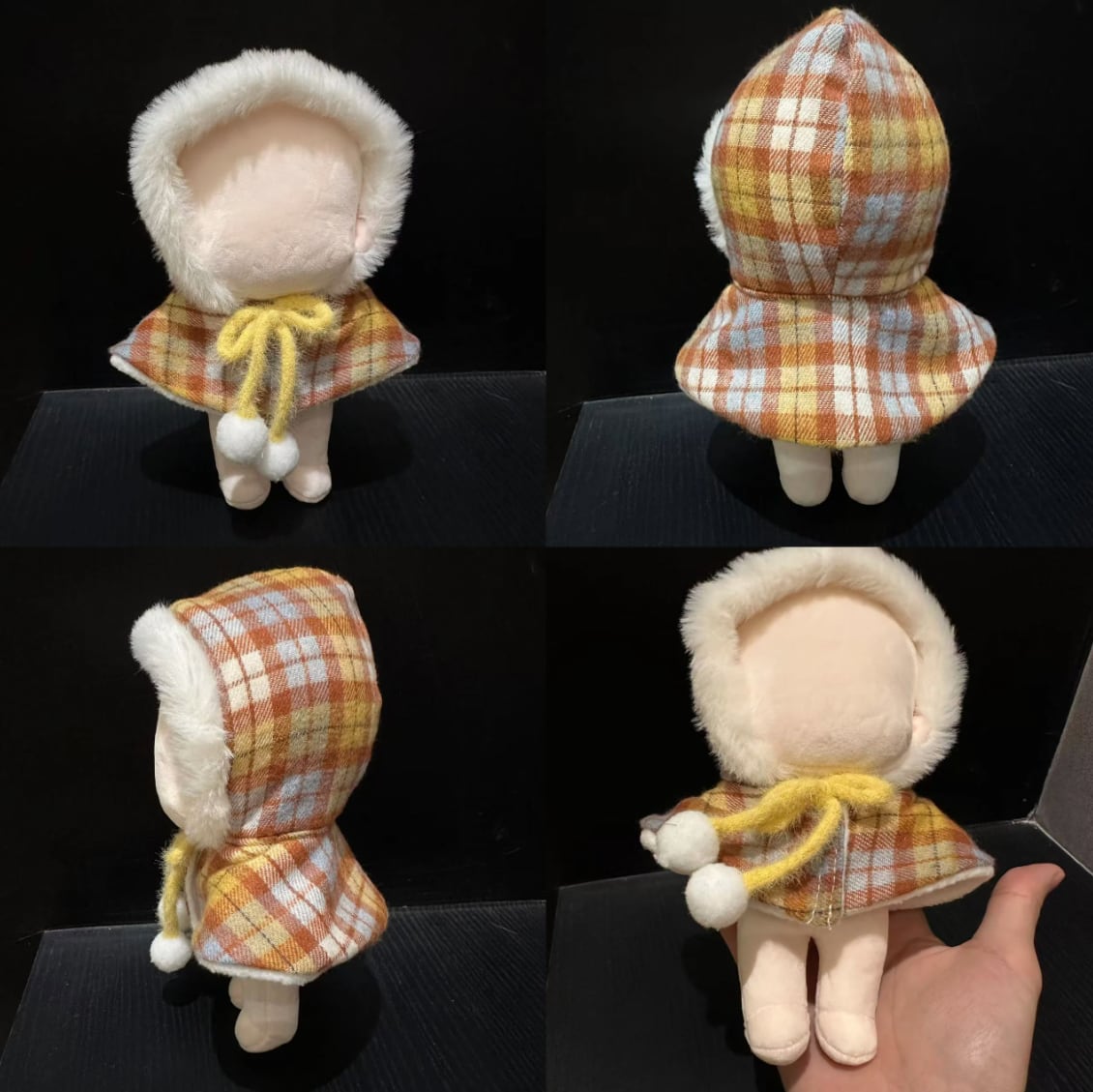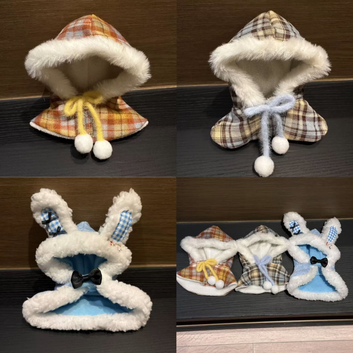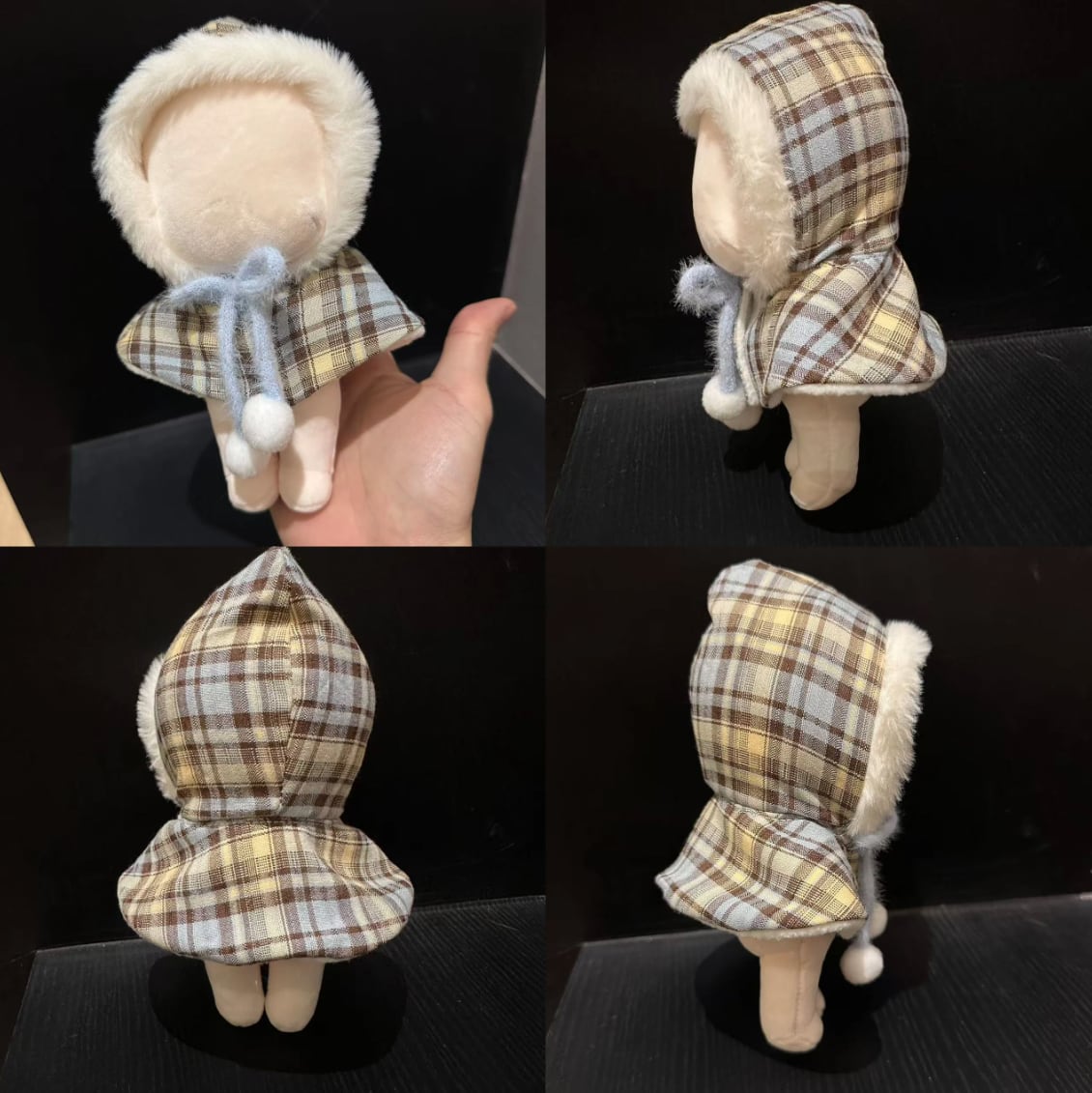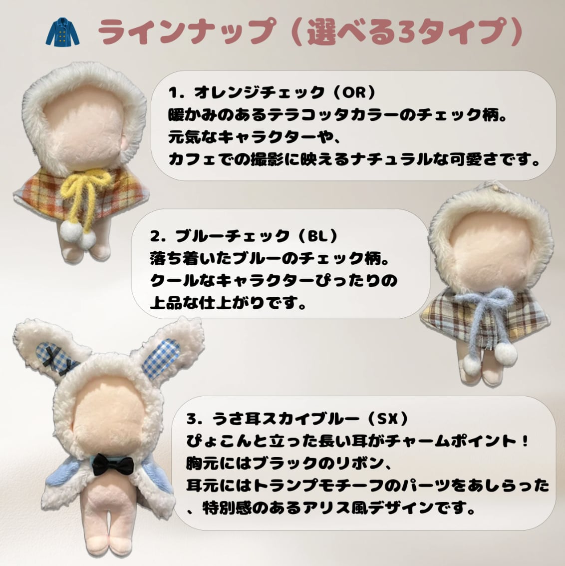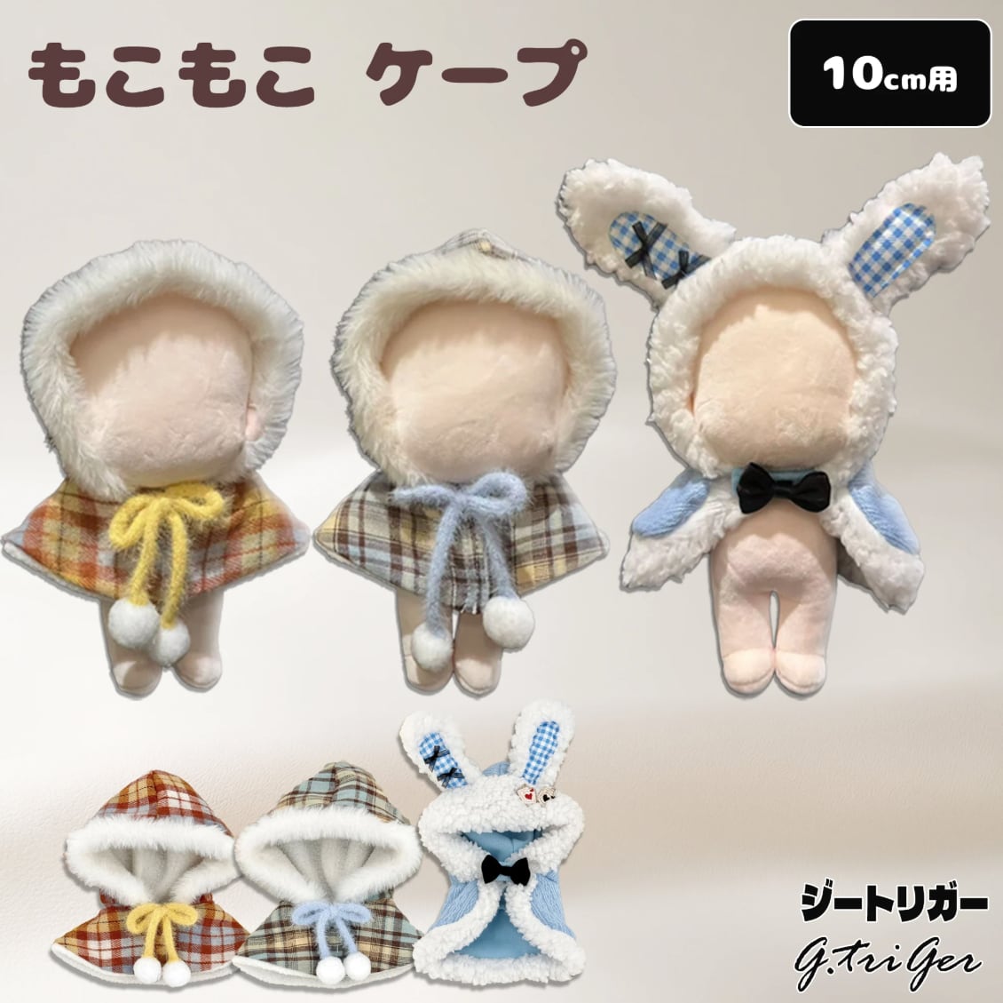 もこもこケープ 3種(チェック柄・うさ耳)【10cmぬい服】 TGMC-1303
