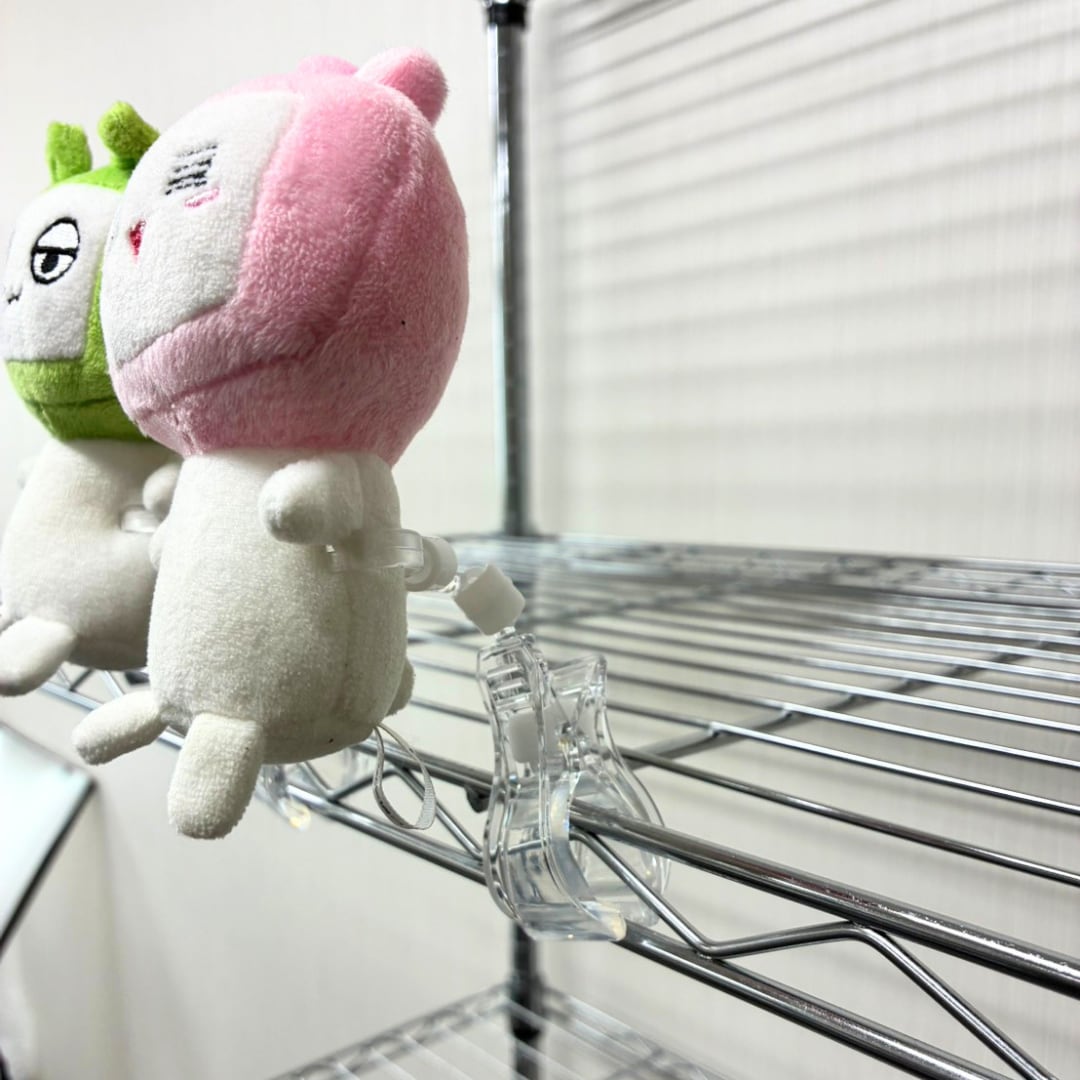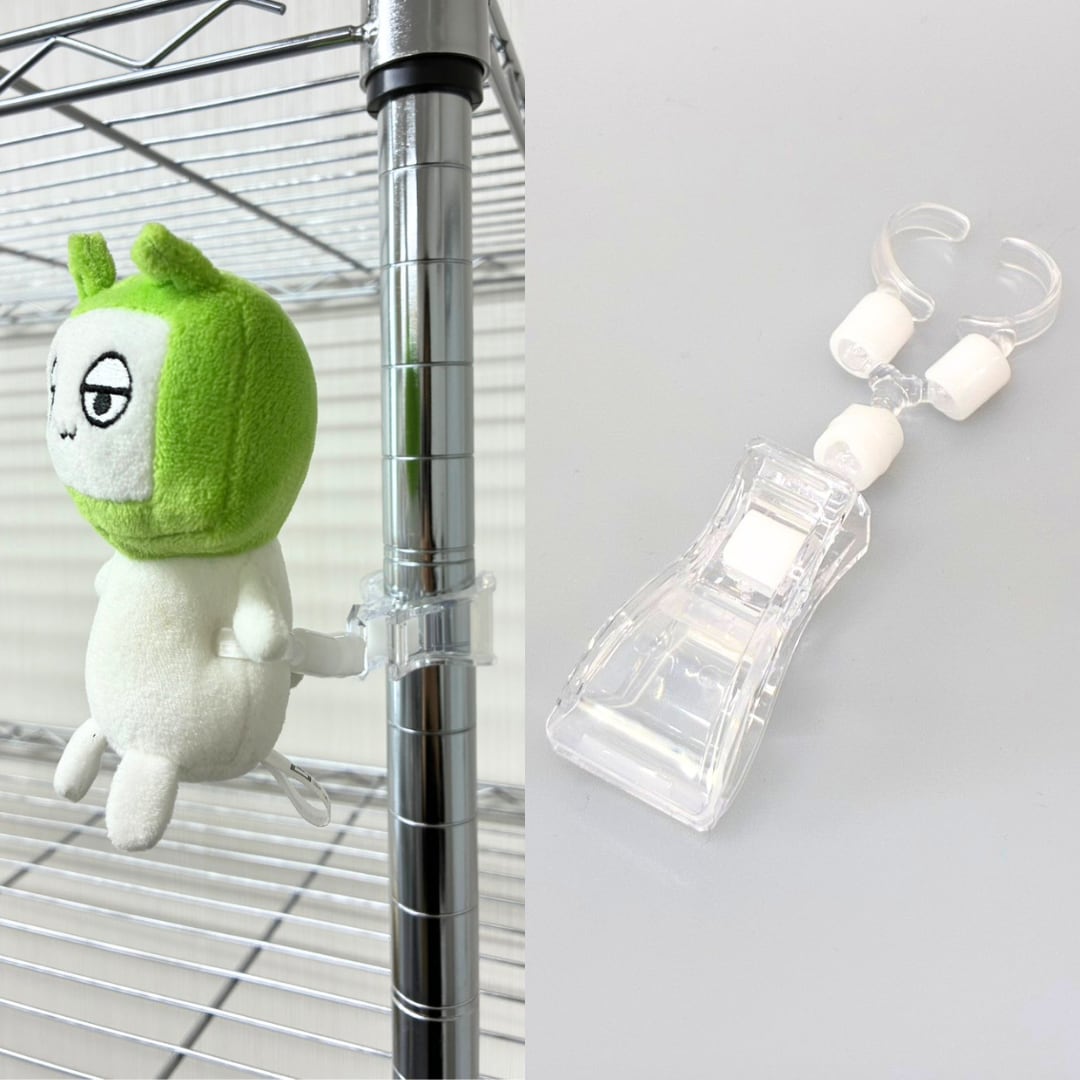 ぬいぐるみを挟んでテレビやモニター、ハンガーラックやドアノブなど色々なところにディスプレイできる、ぬいホルダークリップが新登場✨