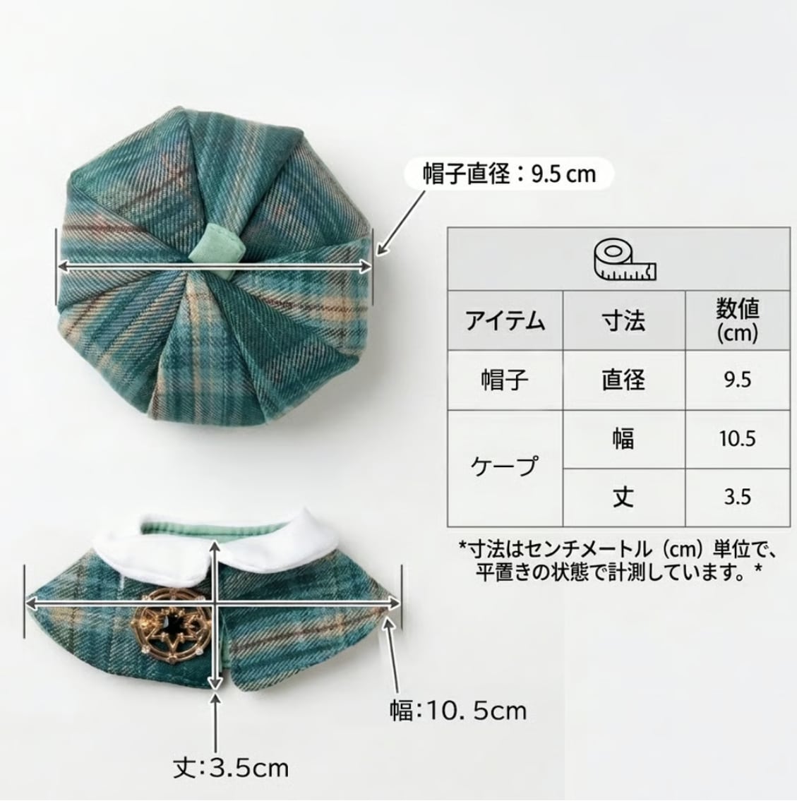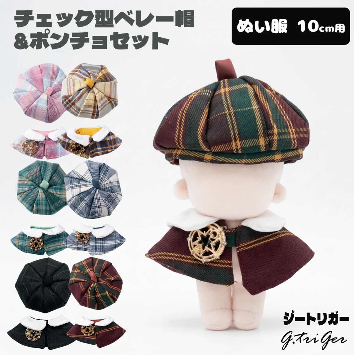 チェック型ベレー帽&ポンチョセット【10cm用】TGMC-1226