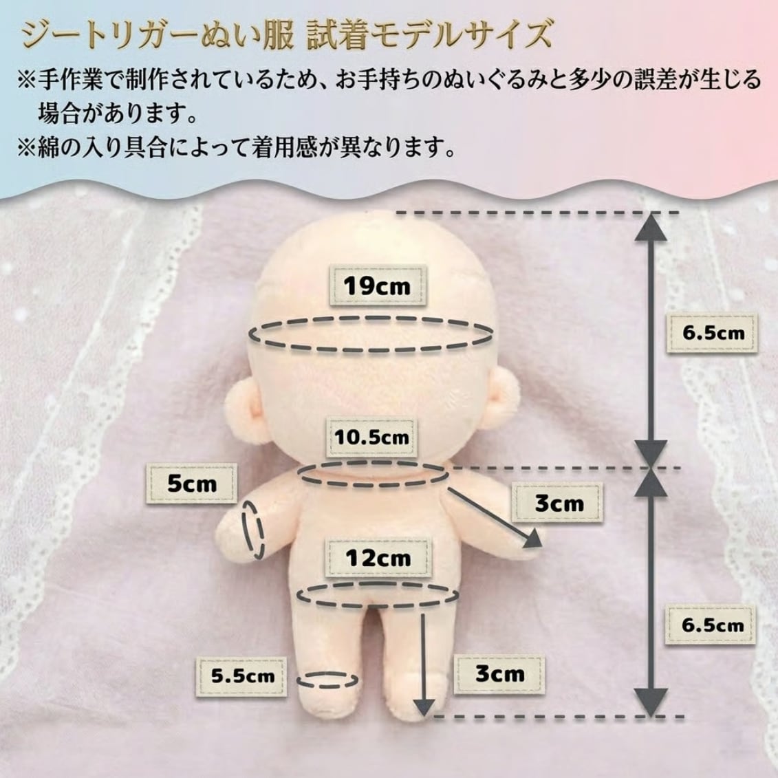 商品に使用されているぬいぐるみのサイズは目安です。お手持ちのぬいぐるみの寸法をご確認ください。