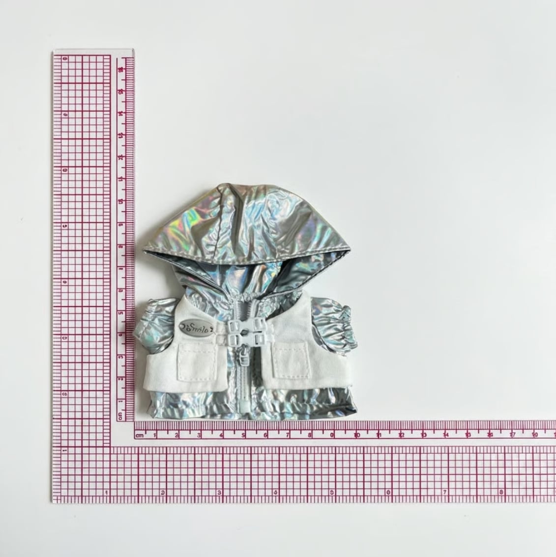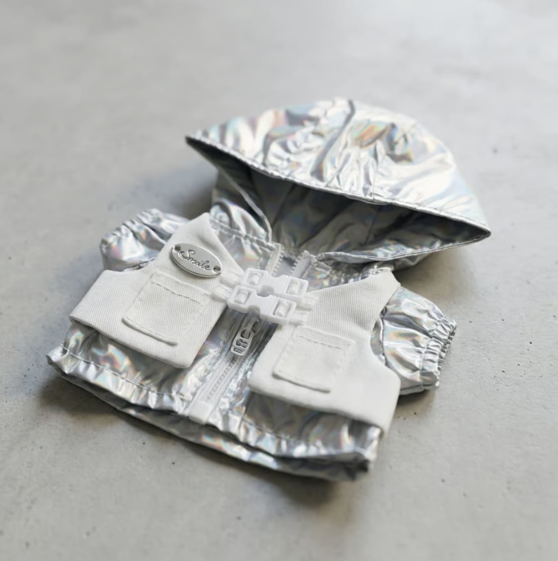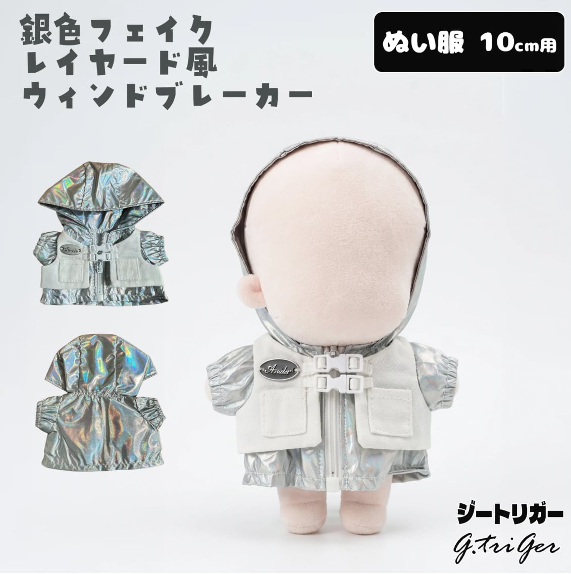 10cmサイズの前後ぬいぐるみ(ぬい)用、メタリックな輝きが目を引くウィンドブレーカーです。