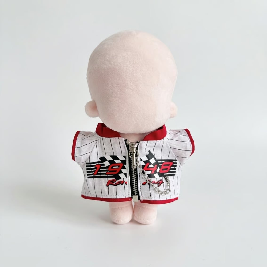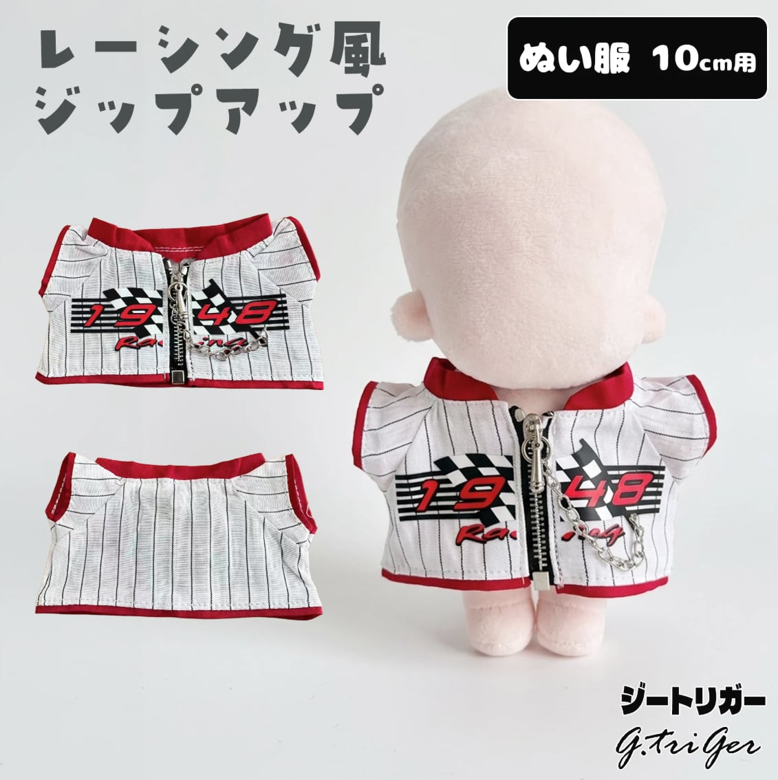チェッカーフラッグと「1948 Racing」のロゴが目を引く、クールでスポーティーな10cmぬいぐるみ用ジップアップベストです。