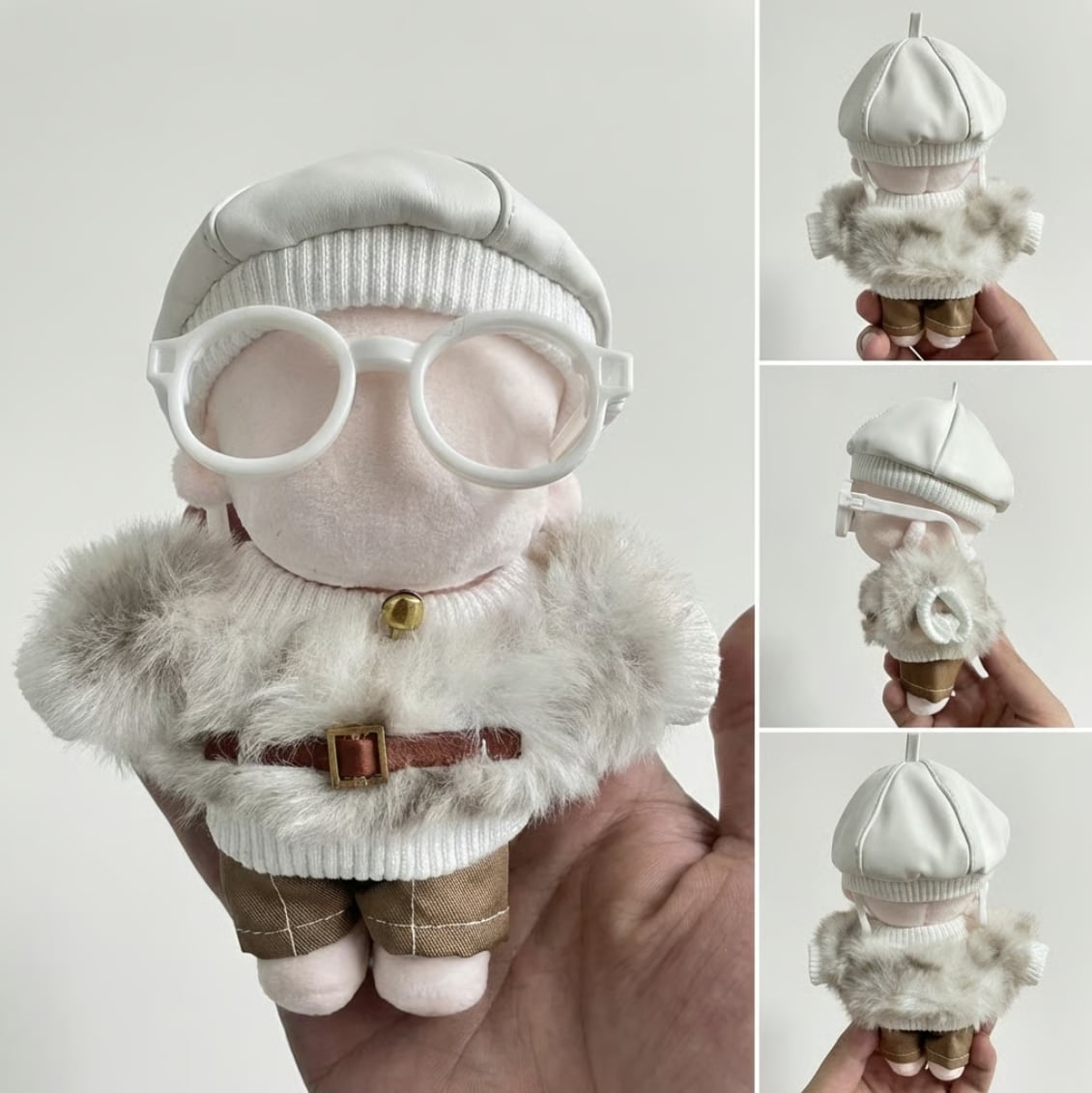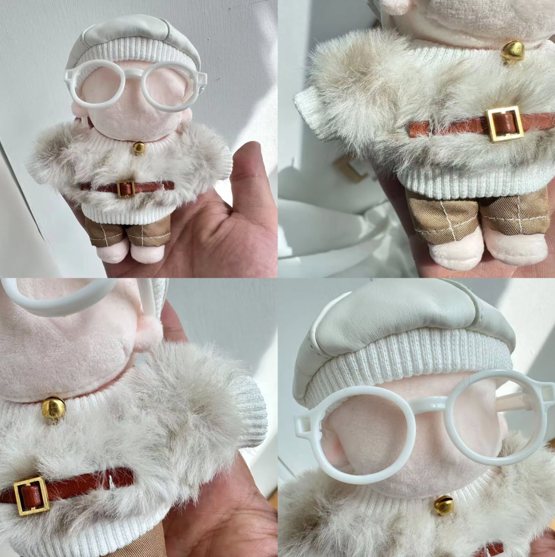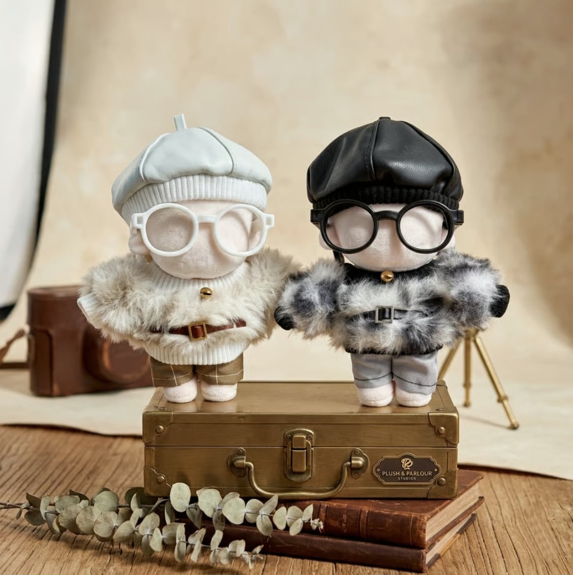 ブラックを基調としたクールなスタイルと、ホワイト×ブラウンの柔らかながらも品のあるスタイルの2色をご用意しました。眼鏡やベルトのバックルなど、細部までこだわったディテールがぬいぐるみの個性を引き立てます。