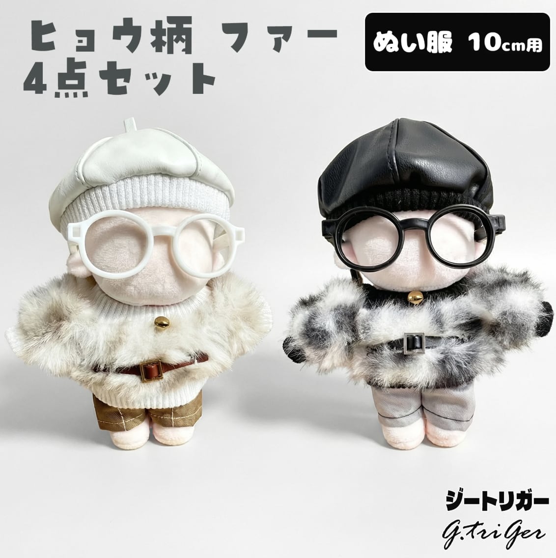 豹柄 ファー 4点セット(ベレー帽・メガネ・パンツ付)【10cm用】TGMC-1311