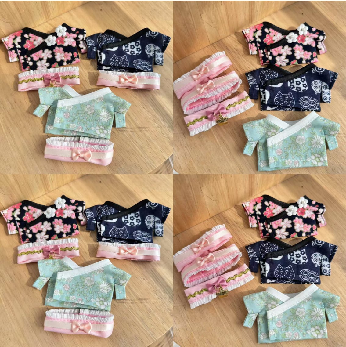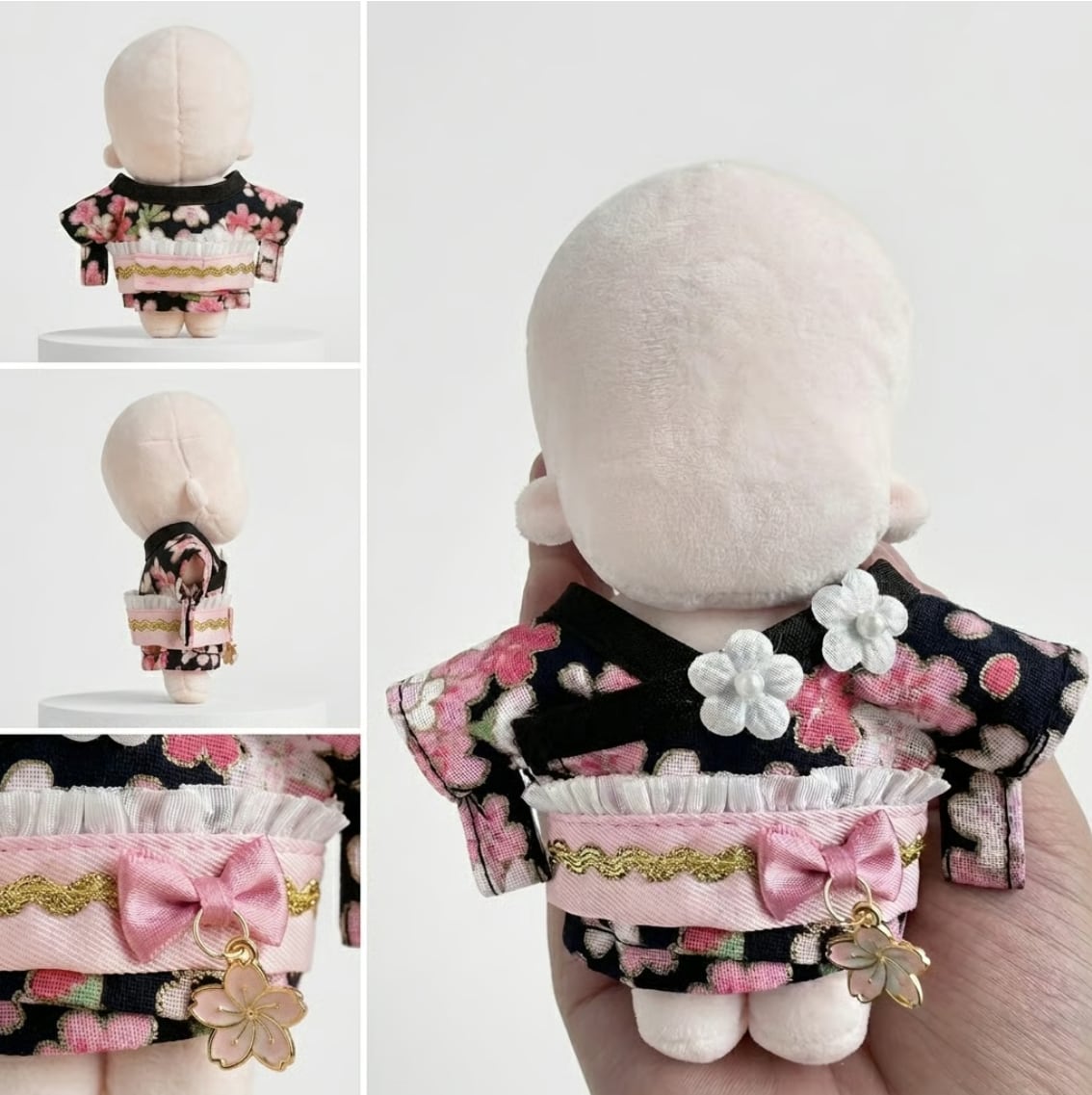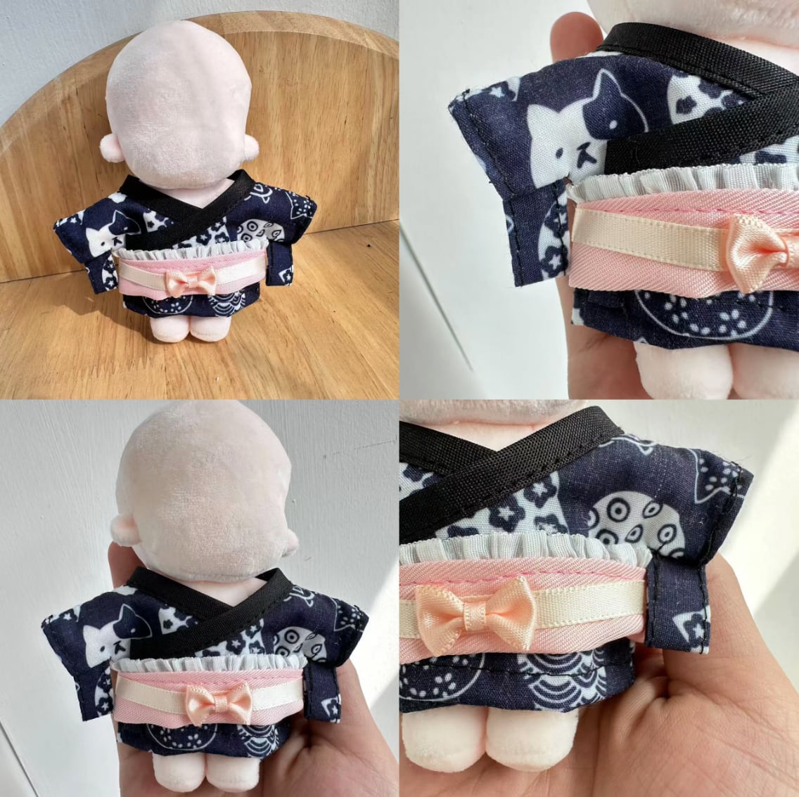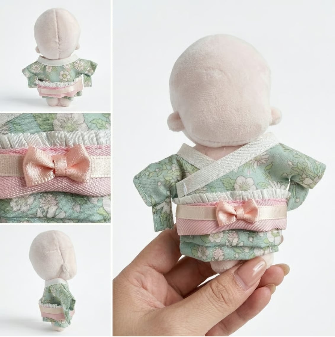 和の趣と現代的な可愛さを掛け合わせた、10cmぬいぐるみ専用の着物セットです。