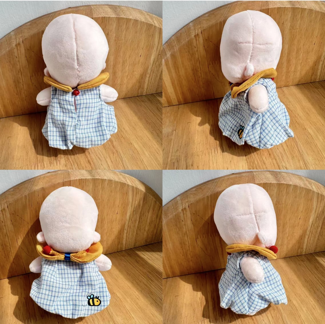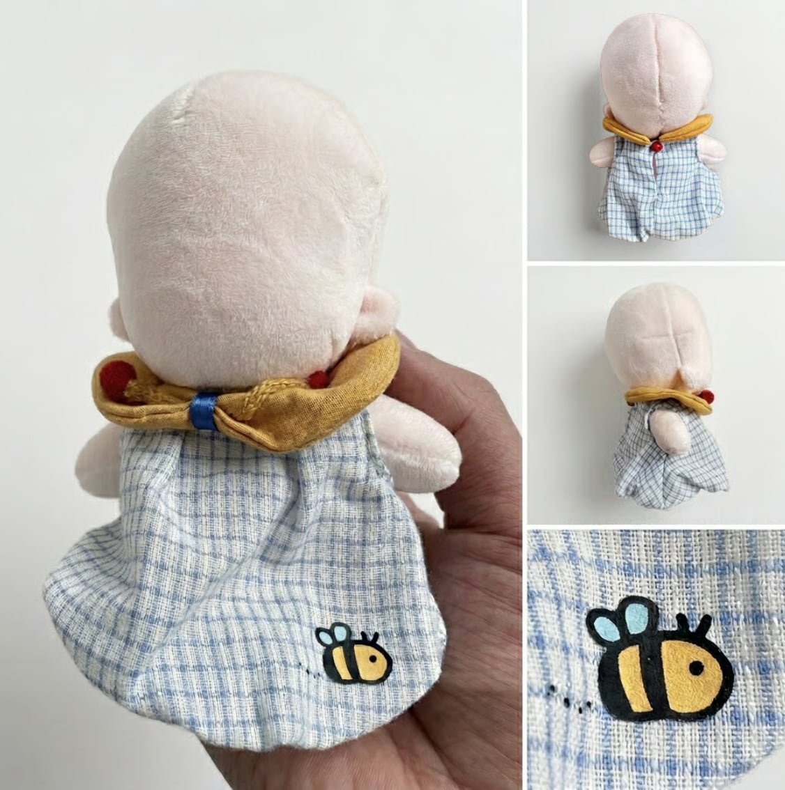 涼しげなブルーのギンガムチェック生地を使用。これからの季節のお出かけ(ぬい撮り)にもぴったりなデザインです。