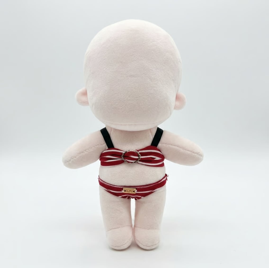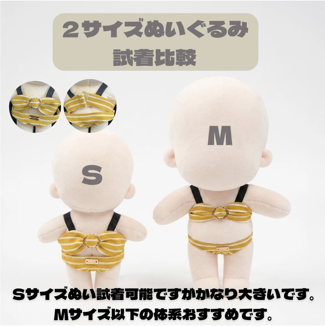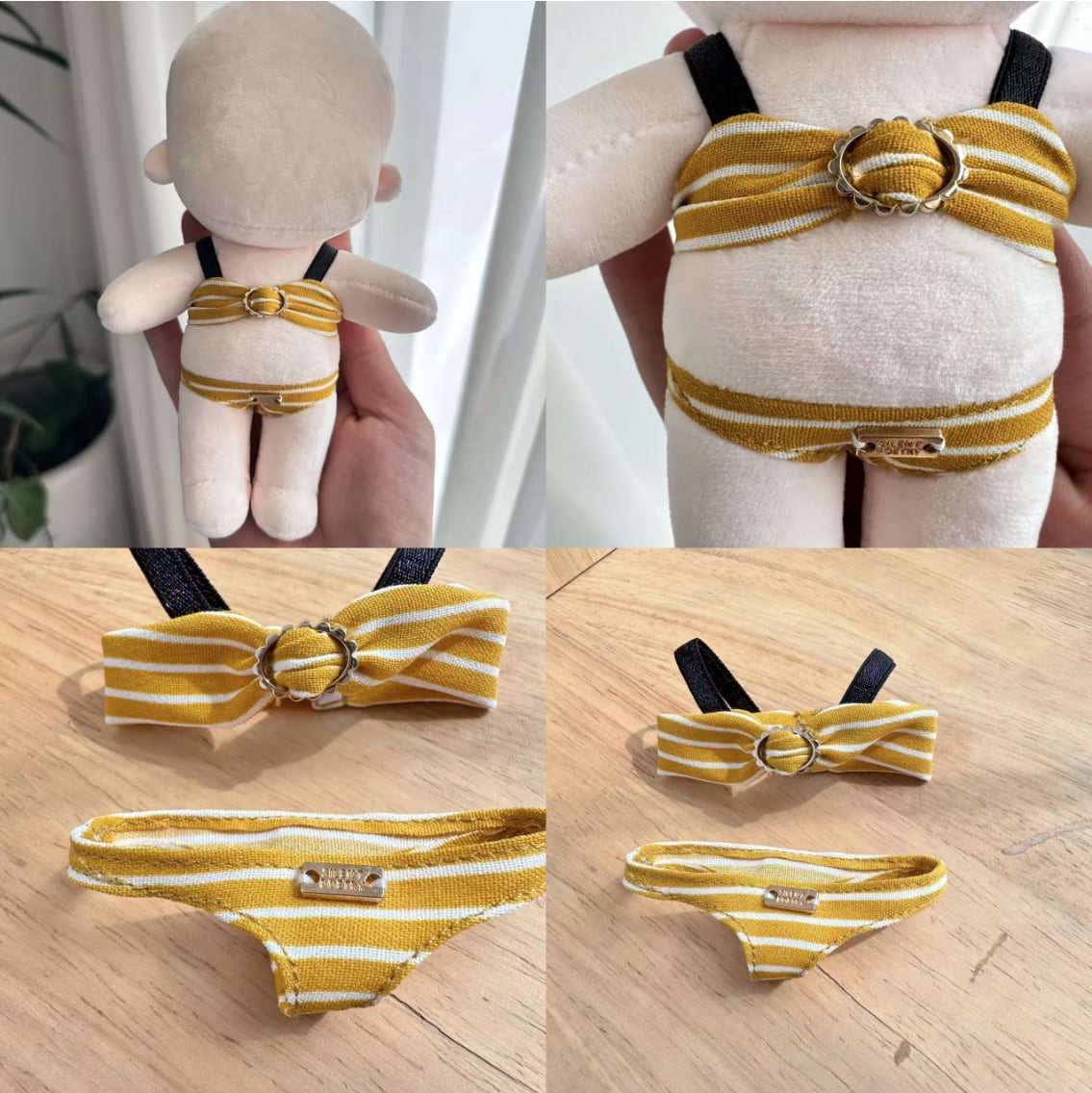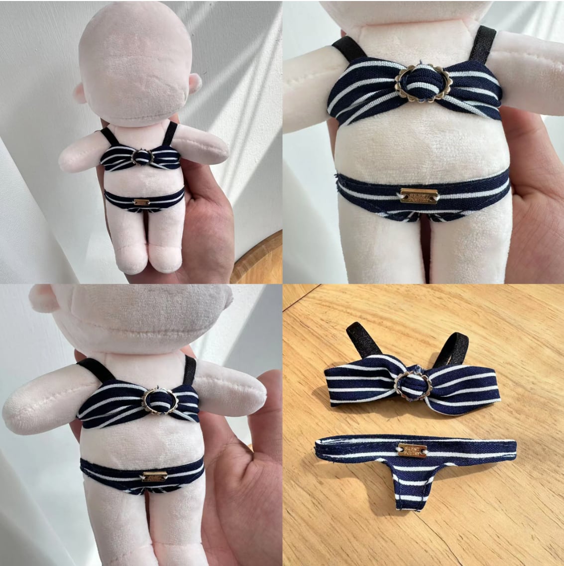 ヘルシーなボーダー柄と、胸元のリボンデザインが目を引くぬいぐるみ用ビキニセットが登場しました。