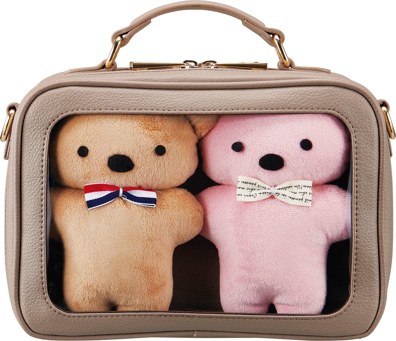 「muchu muchuつれてってぬいショルダー」は推しぬいとお出かけがもっと楽しくなるようにデザインされた、ぬいぐるみ用のショルダーバッグです。 バッグの前面には透明ビニール窓がついており、バッグの中に入れた推しぬいがしっかり見える仕様。お気に入りの推しぬいを可愛くアピールできます。